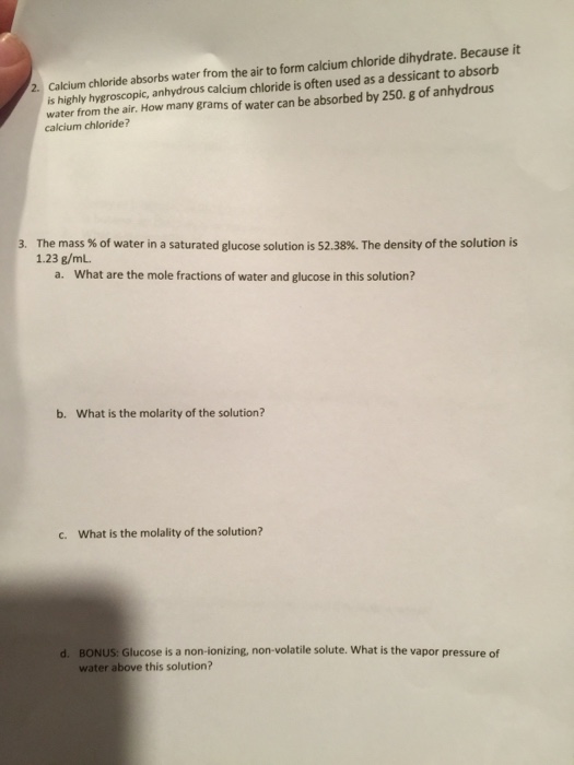 Solved Is Highly Hygroscopic Anhydrous Calcium Chloride Is Chegg Com